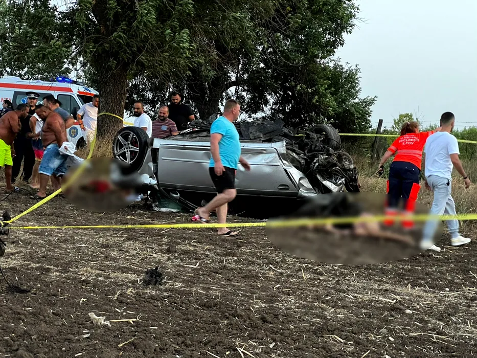 FOTO-VIDEO | Doi adulți și doi copii au murit într-un grav accident petrecut pe DN4, la Frumușani