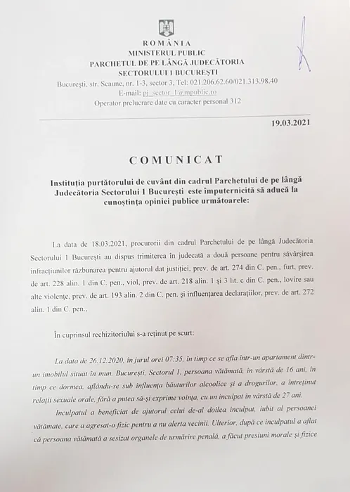 Doi bărbați din București, trimiși în judecată pentru violarea și agresarea unei fete de 16 ani, beată și drogată