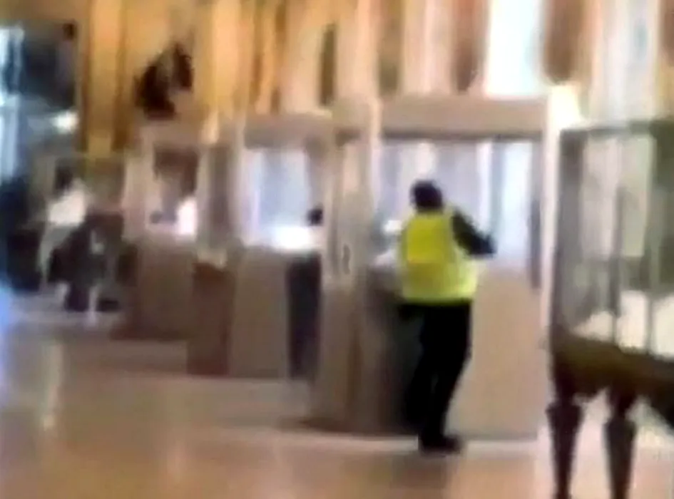 O captură de ecran surprinsă de pe înregistrările video CCTV ale Muzeului Luvru îl arată pe unul dintre hoți Foto: Mediafax
