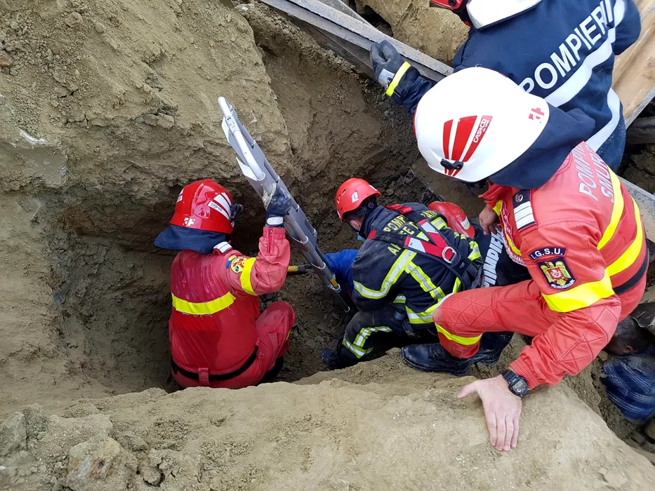 Doi muncitori au fost prinși sub un mal de pământ, în Vâlcea. Pompierii încearcă să-i salveze. Imagini dramatice de la fața locului