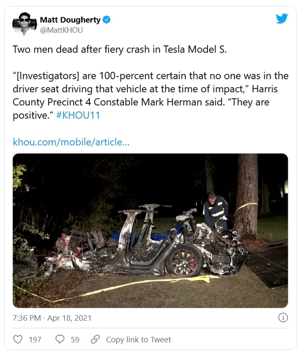 Doi oameni au murit într-un accident cu o mașină electrică Tesla. Unul se afla pe locul pasagerului din dreapta, altul pe bancheta din spate!