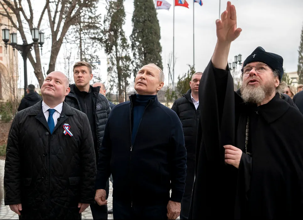 Tihon Șevkunov si Vladimir Putin, impreuna cu guvernatorul Sevastopolului.