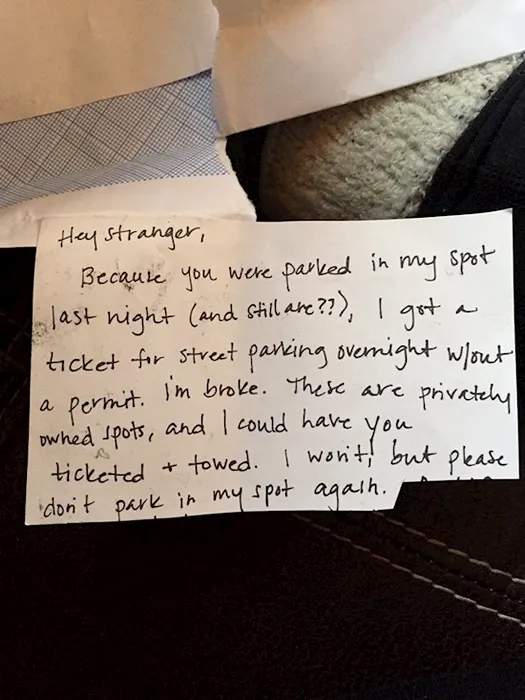 Doi șoferi, un loc de parcare și un schimb de bilețele. Povestea depășește orice imaginație