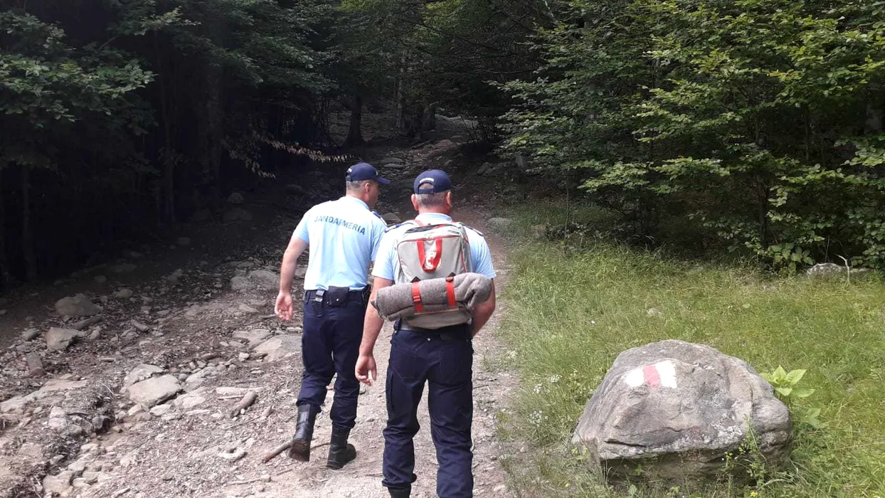 GALERIE FOTO: Doi turiști, soț și soție, rătăciți în Munții Buzăului, recuperați de jandarmi după două ore de căutări