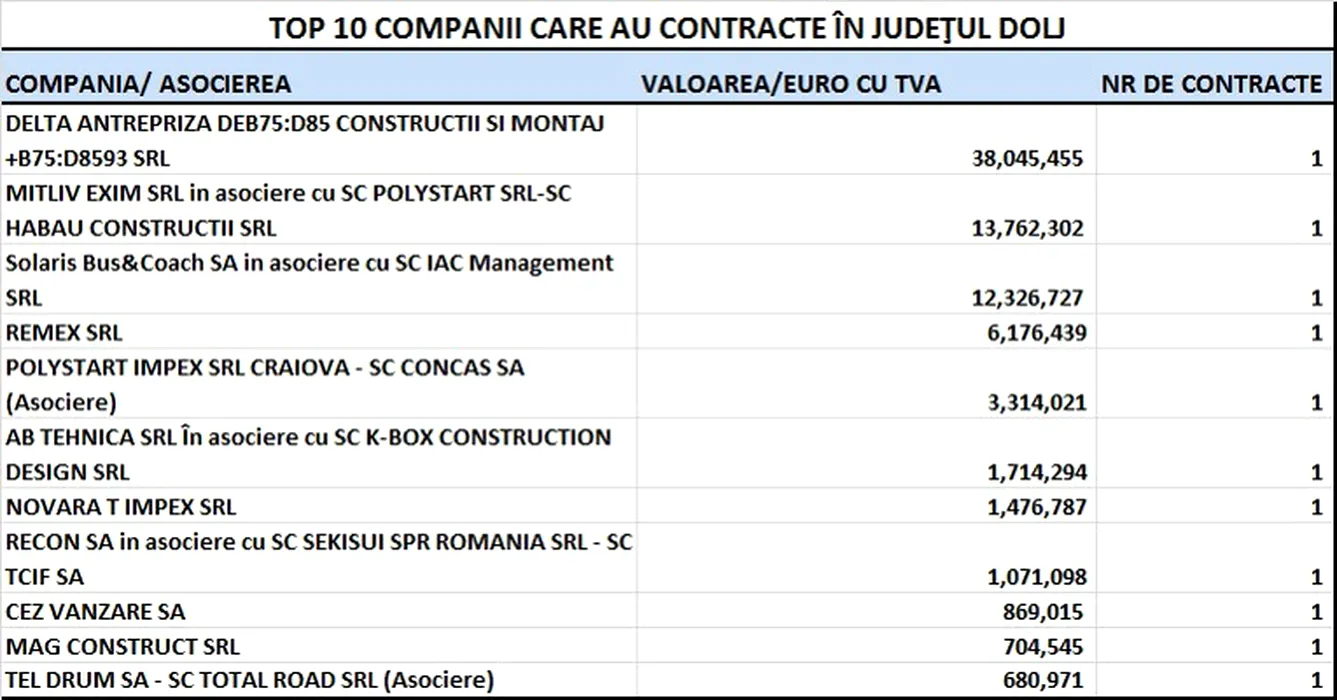 DOLJ. Unde au mers banii publici în 2014. Topul firmelor care au contracte locale cu statul