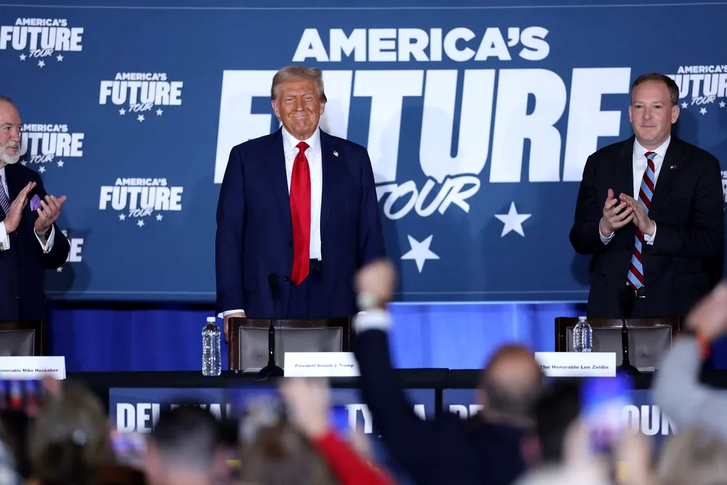Former US President and Republican presidential candidate Donald Trump arrives to takespart in a roundtable discussion hosted by Building America’s Future in Drexel Hill, Pennsylvania, on October 29, 2024.,Image: 927921514, License: Rights-managed, Restrictions: , Model Release: no