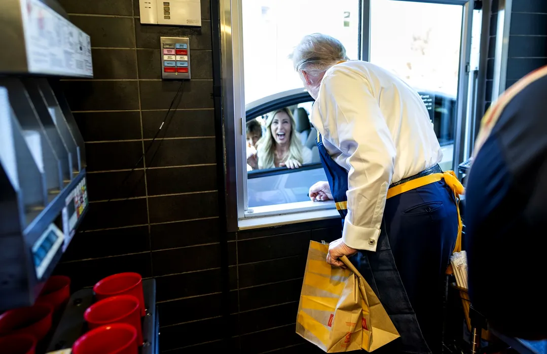 Donald Trump, lucrător la McDonald’s pentru o zi. A prăjit CARTOFI și a servit meniuri cu burgeri unor clienți dintr-un Drive Thru