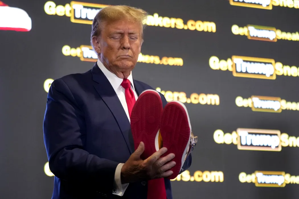 GALERIE FOTO: Donald Trump seduce tinerii votanți cu SNEAKERS aurii / Cât costă semnătura lui Trump pe bascheți