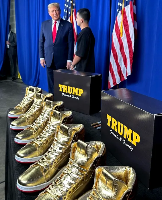 Donald Trump seduce tinerii votanți cu SNEAKERS aurii / Cât costă semnătura lui Trump pe bascheți