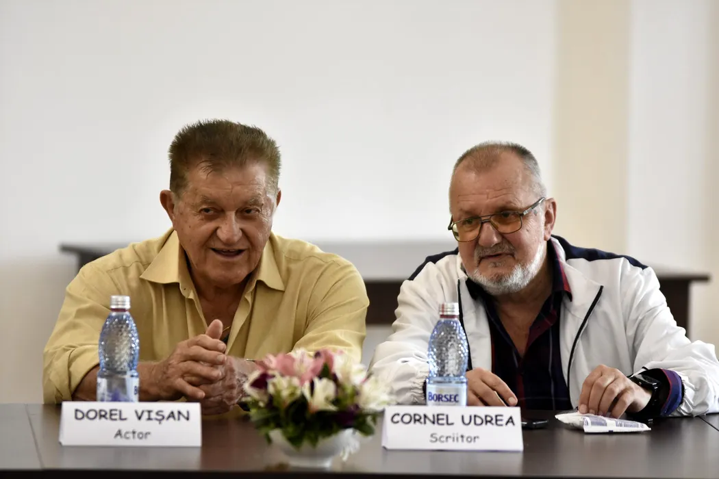 Actorul Dorel Visan (S) si Cornel Udrea (D) participa la conferinta de presa din deschiderea Festivalului National de satira si umor" LA PORTILE RASULUI'' care se desfasoara la Palatul Culturii Teodor Costescu din Drobeta Turnu Severin, vineri, 26 mai 2017.JUSTINEL STAVARU/MEDIAFAX FOTO