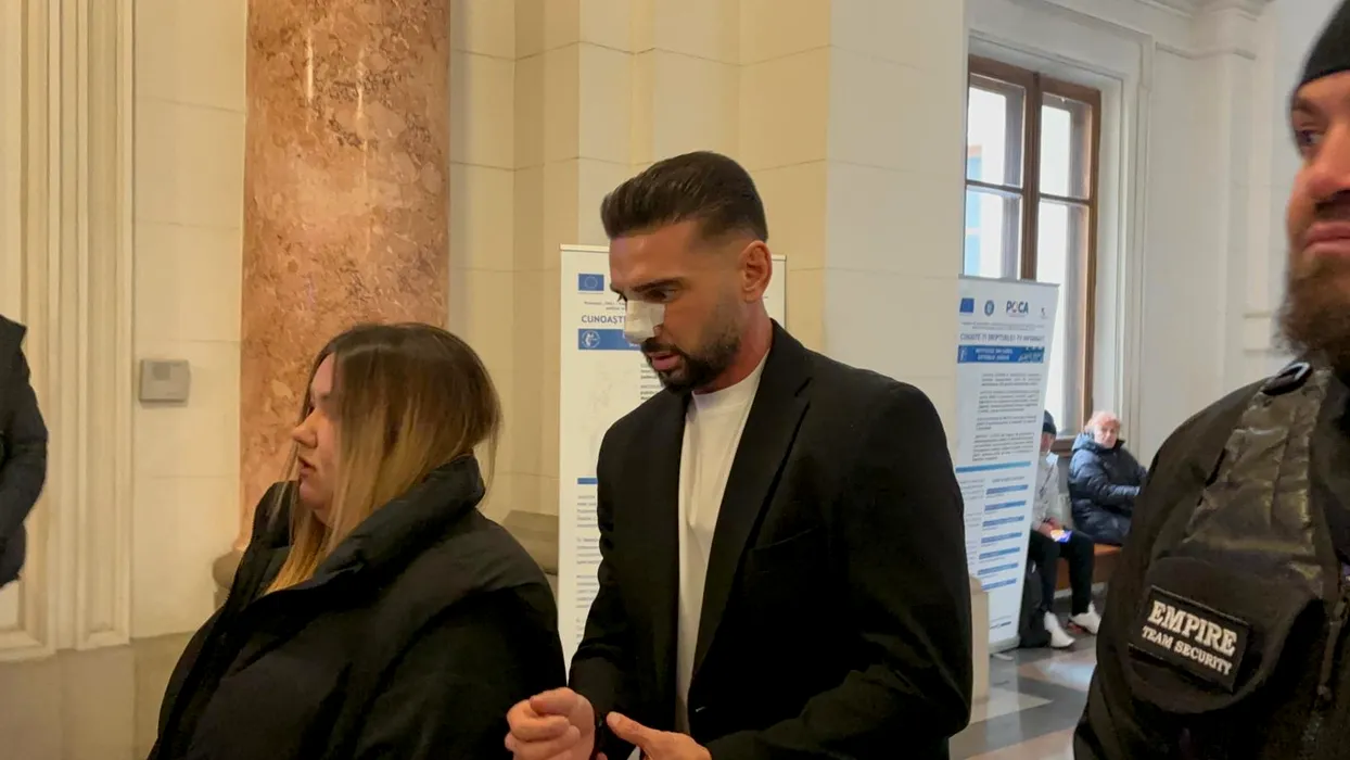 Dorian Popa a ajuns la Tribunal flancat de bodyguarzi și bandajat la nas. Judecat pentru că a condus sub influența substanțelor interzise