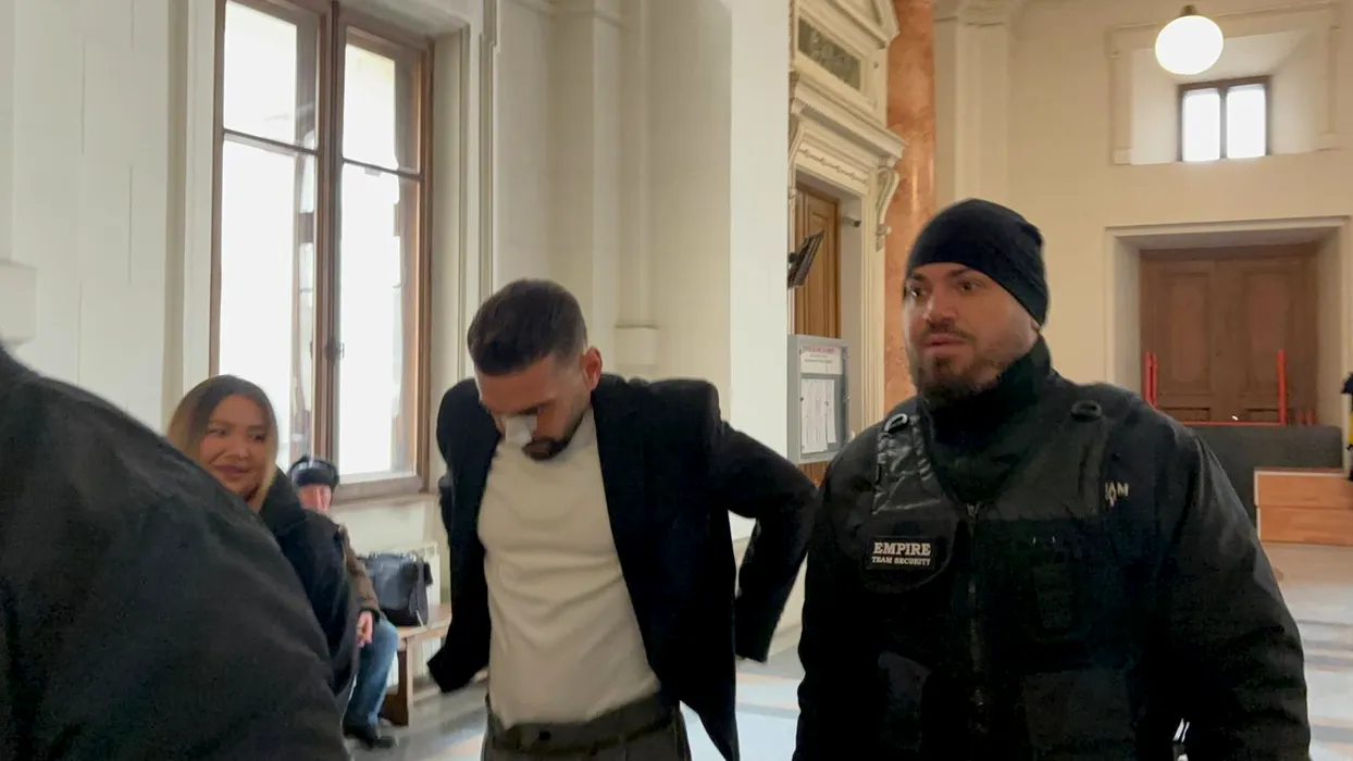 Dorian Popa a ajuns la Tribunal flancat de bodyguarzi și bandajat la nas. Judecat pentru că a condus sub influența substanțelor interzise
