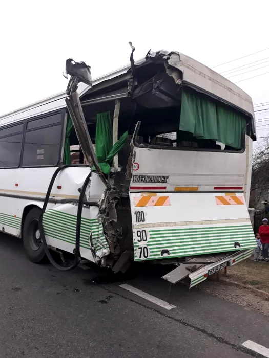 GALERIE FOTO: Două autocare cu 80 DE MUNCITORI la bord, implicate într-un ACCIDENT în județul Gorj