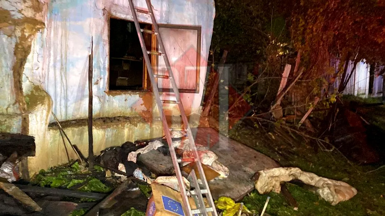 FOTO | Pompierii din Iași au găsit două persoane carbonizate într-o casă cuprinsă de flăcări, lângă sediul Inspectoratului de Poliție Județean