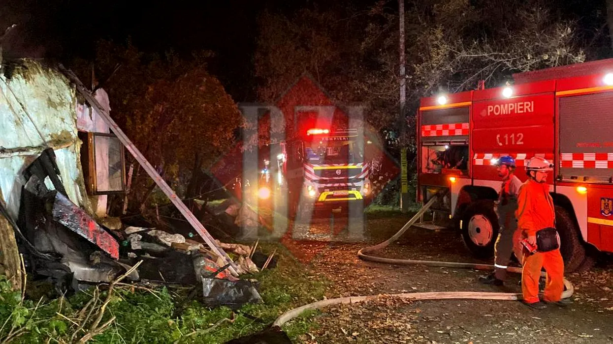 FOTO | Pompierii din Iași au găsit două persoane carbonizate într-o casă cuprinsă de flăcări, lângă sediul Inspectoratului de Poliție Județean