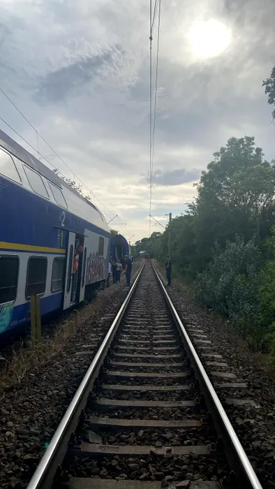Două vagoane ale unui tren de pasageri au DERAIAT pe ruta Craiova-București. Circulația, blocată pe un fir. Călătorii au fost preluați de un alt tren