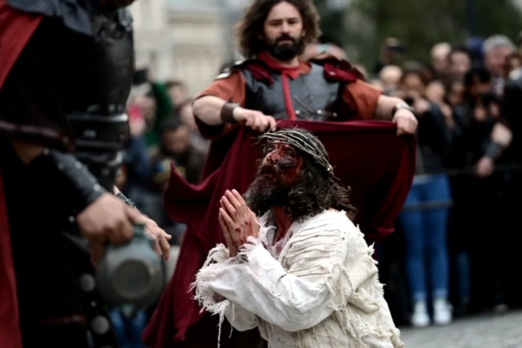 „Drumul Crucii”, refăcut în centrul Capitalei de artistul Daniel Leș. „Ce s-ar întâmpla dacă Iisus ar trece acum printre noi?”. GALERIE FOTO
