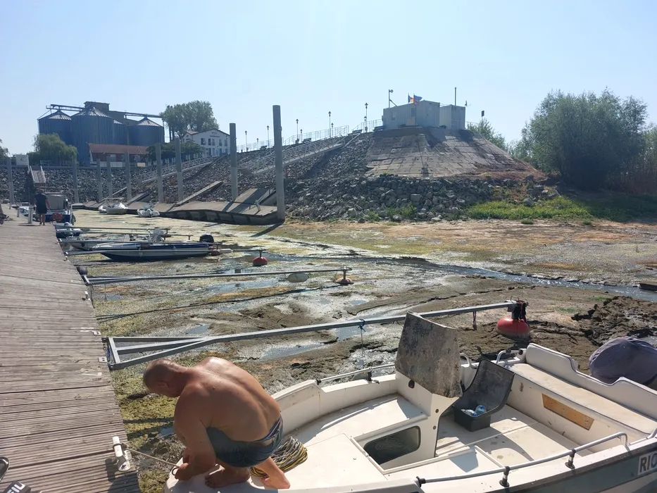 Dunărea a secat în portul turistic din Corabia-Olt. Bărcile stau de câteva săptămâni blocate în nămol