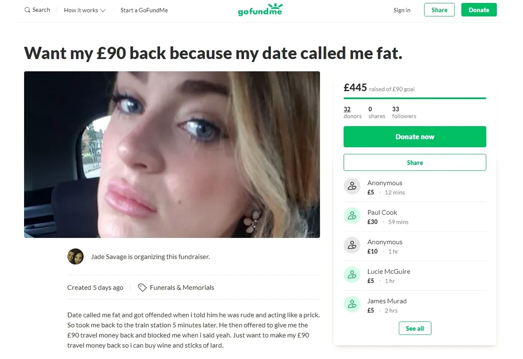 După o întâlnire ratată cu un bărbat cunoscut pe un site de dating, femeia a deschis o campanie de strângere de fonduri: Am plătit biletul degeaba. Mi-a zis că sunt grasă / Cum arată femeia – FOTO