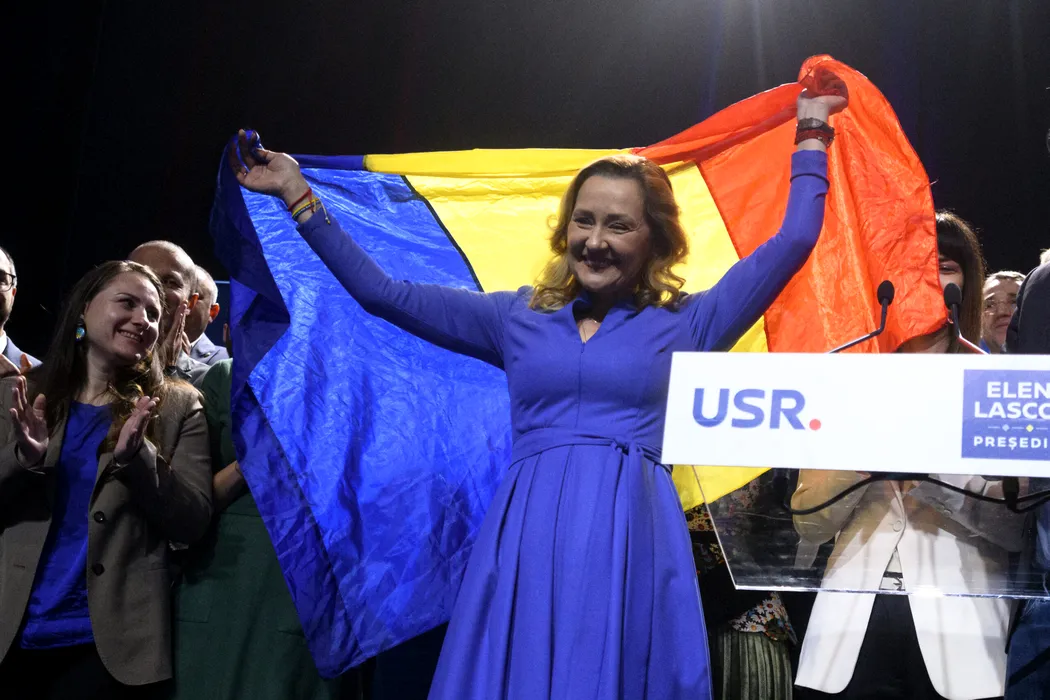 Candidatul USR, calificat in al doilea tur al alegerilor prezidentiale, Elena Lasconi, sustine o conferinta de presa in Bucuresti, luni, 25 noiembrie 2024. ALEXANDRU DOBRE/ MEDIAFAX FOTO.