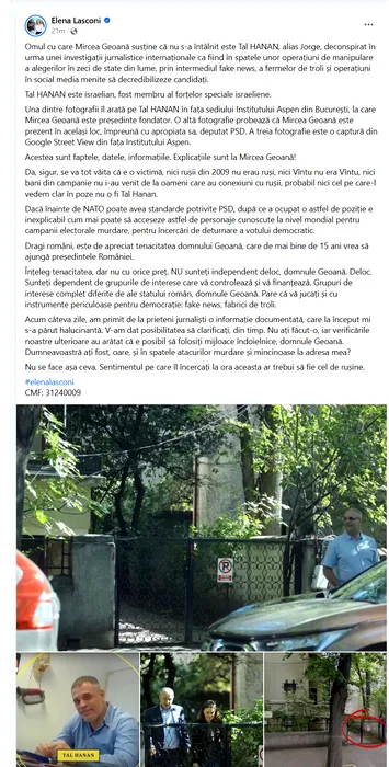 Elena Lasconi: Omul cu care Mircea Geoană susține că nu s-a întâlnit este Tal HANAN, deconspirat ca șef al unor operațiuni de dezinformare