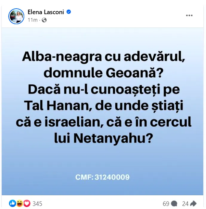Elena Lasconi: Omul cu care Mircea Geoană susține că nu s-a întâlnit este Tal HANAN, deconspirat ca șef al unor operațiuni de dezinformare