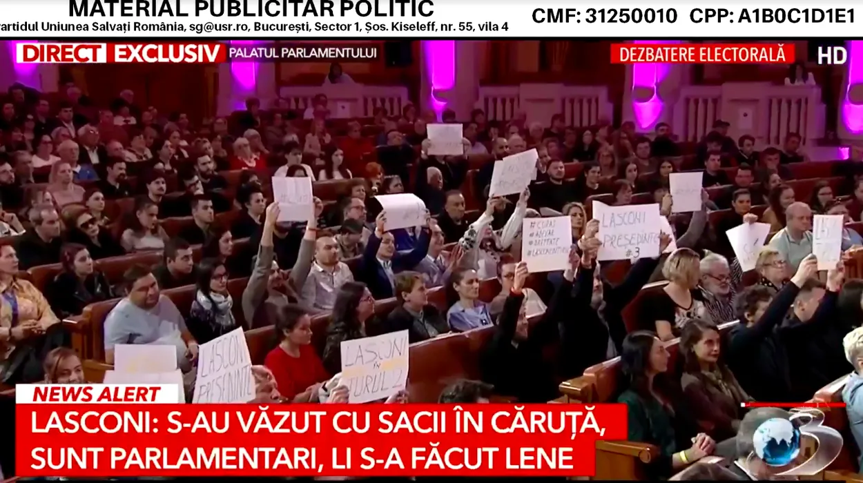 Elena Lasconi, SABOTATĂ de USR. Ionuț Moșteanu i-a pus sub sigiliu pancartele. Mesajele de susținere la o dezbatere televizată, scrise de mână