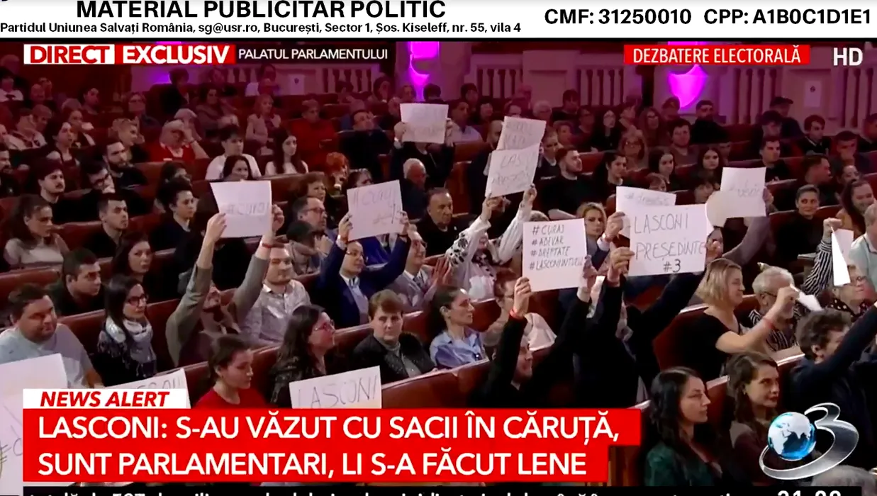 Elena Lasconi, SABOTATĂ de USR. Ionuț Moșteanu i-a pus sub sigiliu pancartele. Mesajele de susținere la o dezbatere televizată, scrise de mână