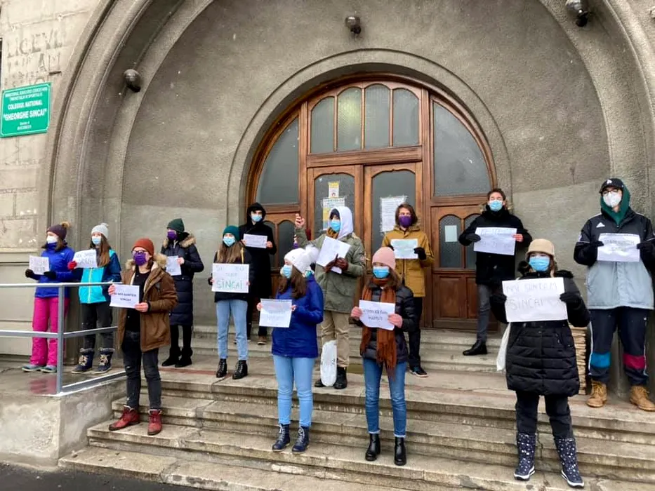 Elevii au ieșit în fața liceului „Gheorghe Șincai” să protesteze! A venit și ministrul Educației