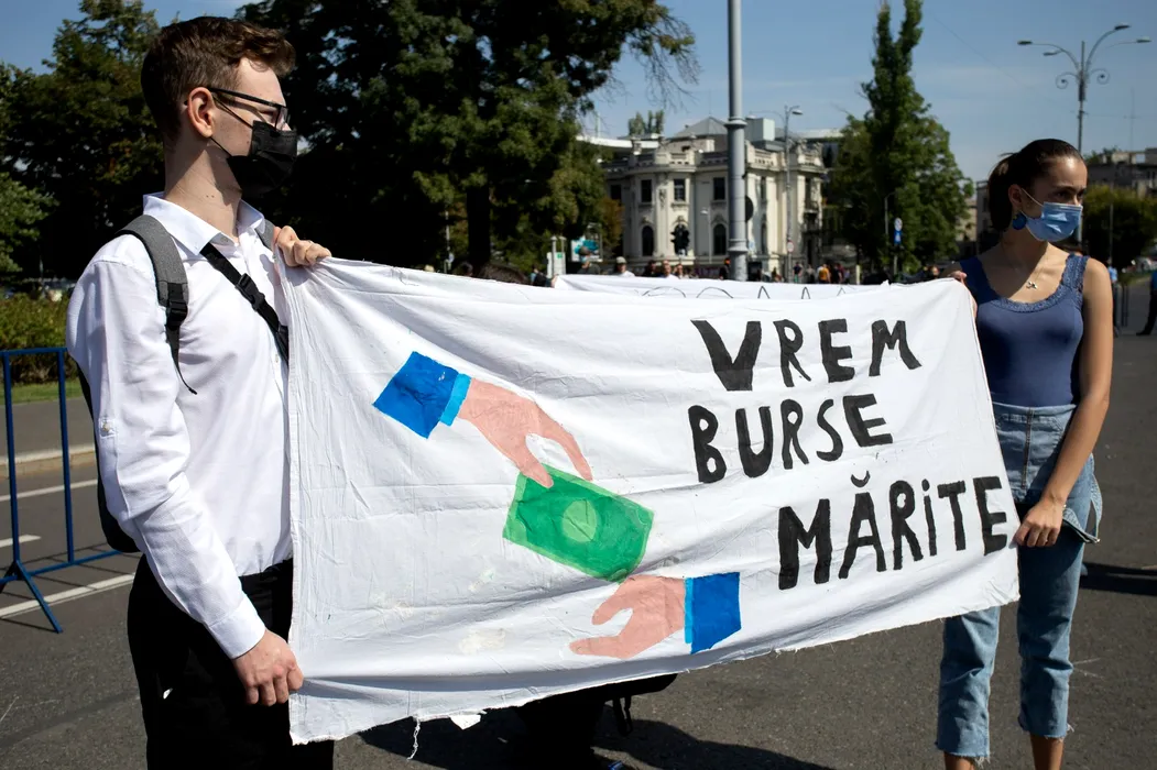 Elevii au protestat în Piața Victoriei în prima zi de școală. Ce nemulțumiri au aceștia | GALERIE FOTO