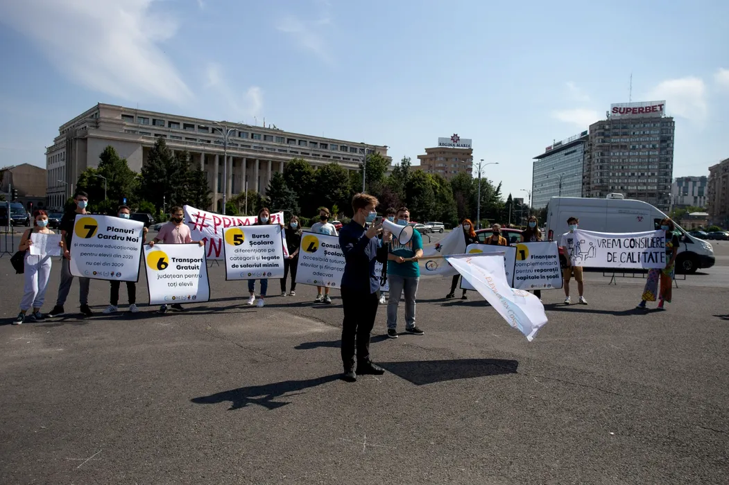 Elevii au protestat în Piața Victoriei în prima zi de școală. Ce nemulțumiri au aceștia | GALERIE FOTO