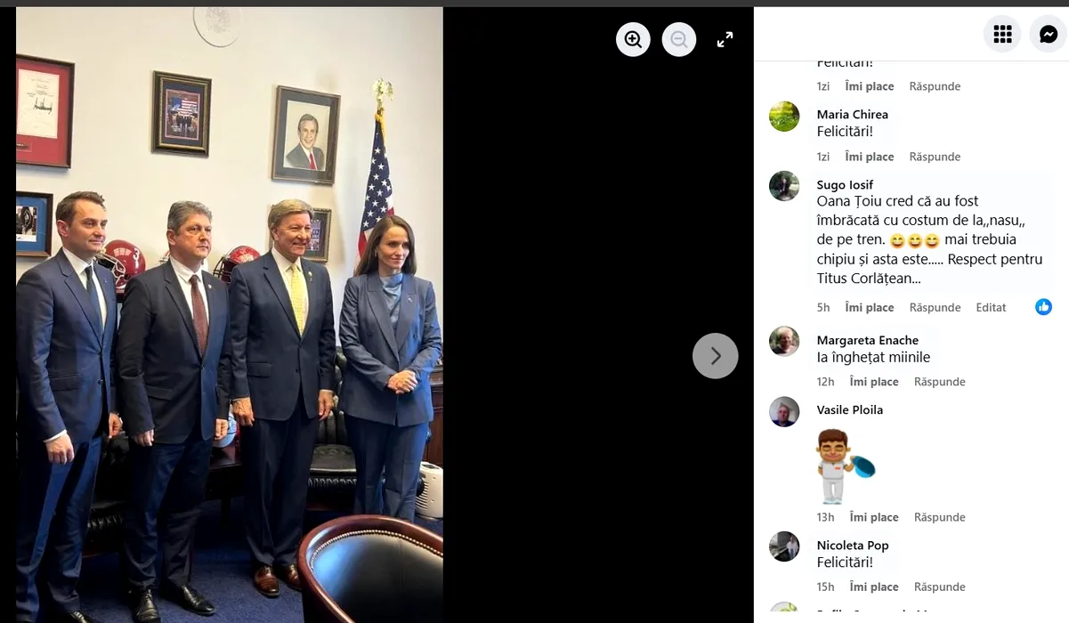 „Emisarul lui Ciolacu” râde de „emisarul lui Nicuşor Dan”. Dragoş Sprînceană, omul de afaceri, apropiat de Donald Trump, o ironizează pe Oana Ţoiu pentru ținuta din SUA: „Băieți, i-ați împrumutat costumul?”