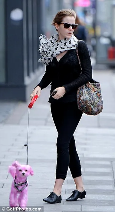 Emma Watson, fotografiată cu un bichon roz. Cum explică actrița din Harry Potter neobișnuita culoare a câinelui