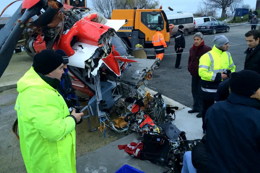 Epava elicopterului SMURD prăbușit a fost adusă la mal după 24 de ore de la accident. GALERIE FOTO