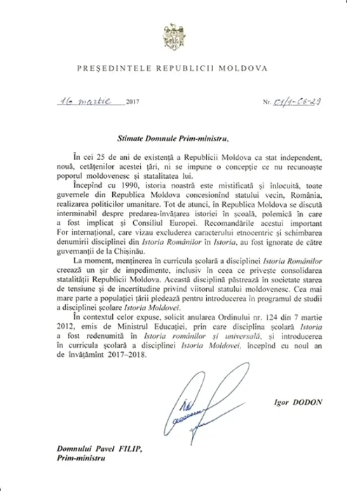 Este oficial: Dodon a cerut Guvernului să scoată din școli Istoria Românilor