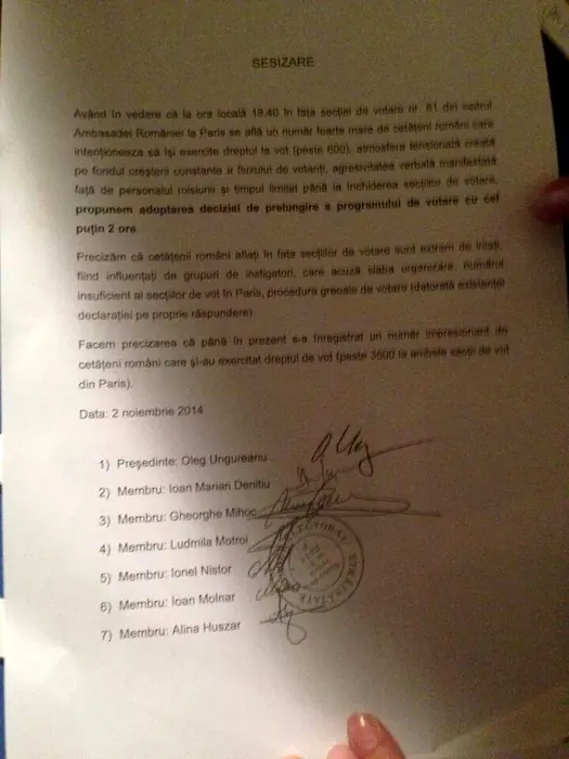 Este SCANDALOS ce apare în această sesizare trimisă către BEC dintr-o secție de votare din Paris, în timp ce românii stăteau la coadă pentru a vota
