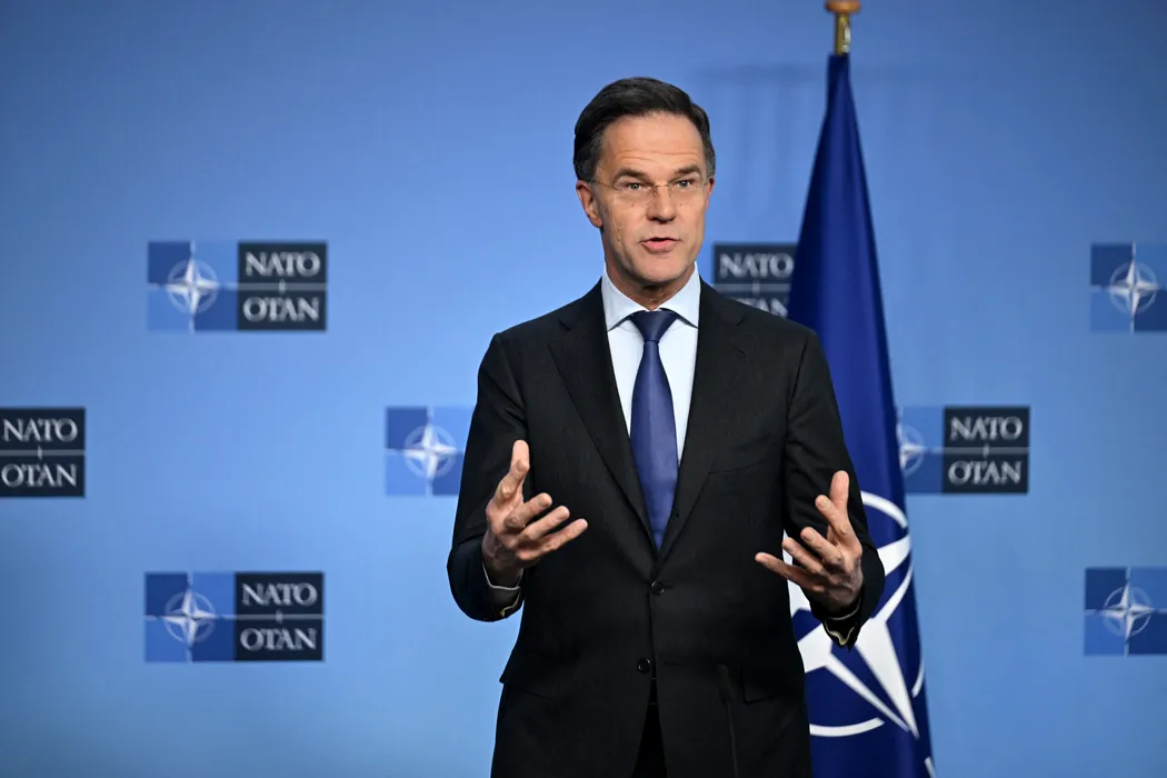 BRUSSELS, BELGIUM - FEBRUARY 12: Secretary General of NATO Mark Rutte and Ukrainian Defense Minister Mykhailo Fedorov (not seen) hold a joint press conference after the NATO Defence Ministers Meeting at NATO headquarters in Brussels, Belgium on February 12, 2026. Dursun Aydemir / Anadolu/ABACAPRESS.COM