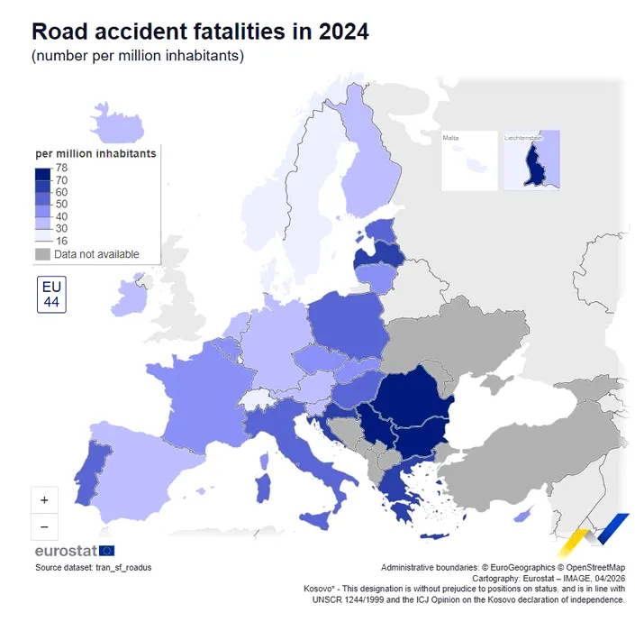 Eurostat: România înregistrează cea mai ridicată rată a deceselor cauzate de accidente rutiere din UE