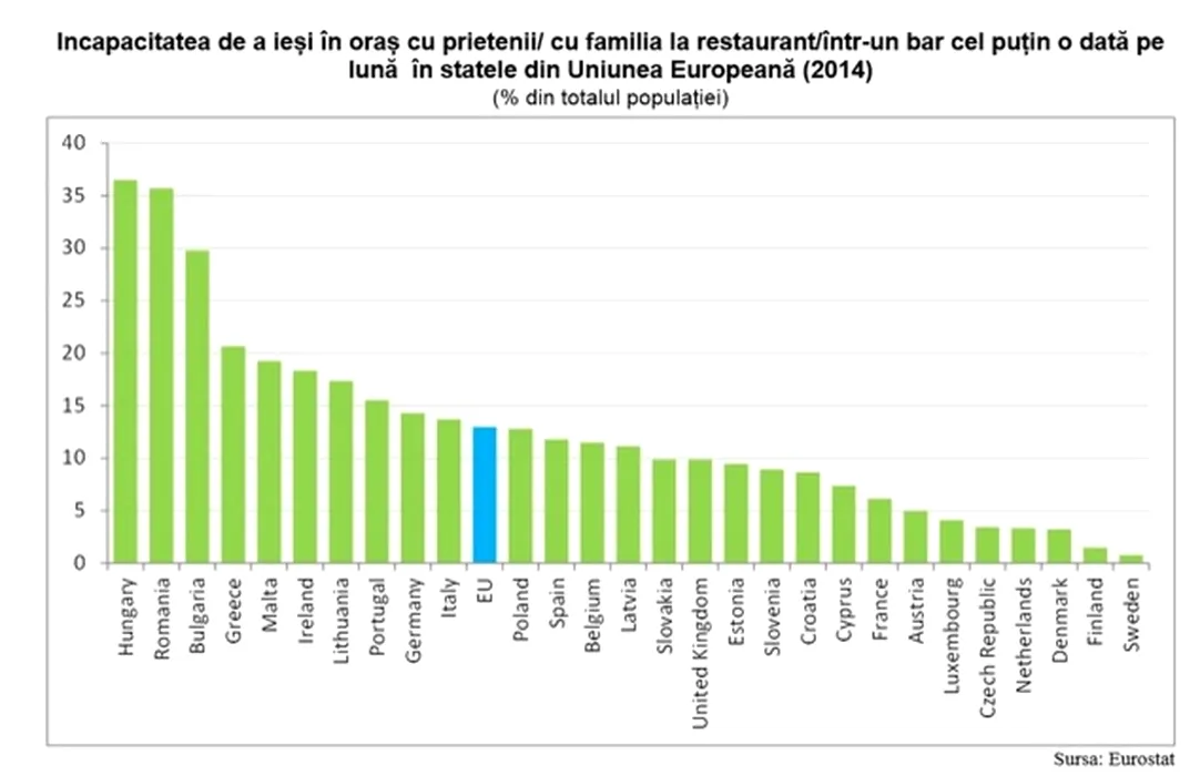 Eurostat: Unul din trei români nu-și permite să iasă în oraș în fiecare lună. Ce țări se află la polul opus