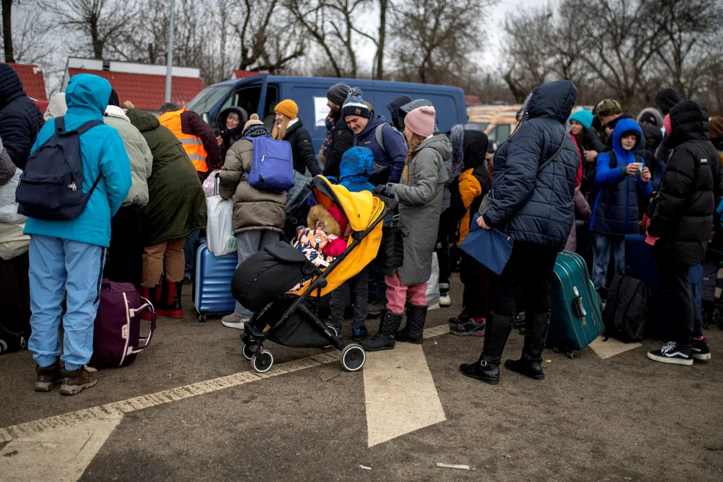 Several people and children wait to cross into Romania at the Porubne border crossing on March 5, 2022, in western Ukraine. According to the latest information, Ukraine suspended today the evacuation of civilians from Mariupol after Russia broke the ceasefire to open humanitarian corridors. The balance of the war, according to the Ukrainian State Emergency Service, is more than 2,000 civilians dead and more than one million refugees have fled the country. The UN Security Council held an emergency meeting to denounce the attack on the Zaporiyia nuclear power plant as illegal. Despite the seriousness of the attack, no change in radiation levels has been recorded.