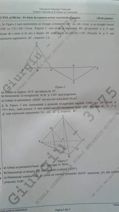 EVALUARE NAȚIONALĂ 2018. SUBIECTE și BAREM la MATEMATICĂ