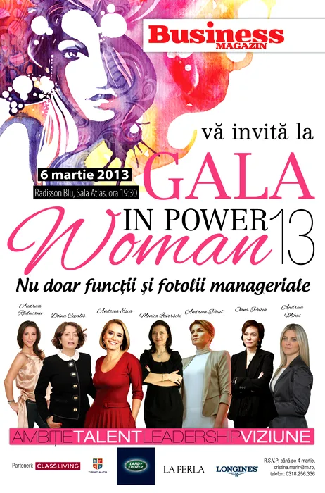 Eveniment Business Magazin: „Gala Women in Power 2013” – Puterea de a conduce în stil feminin