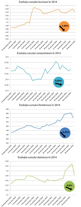 Evoluția leului la începutul lui 2014, cea mai slabă din ultimii patru ani. Cum s-au descurcat monedele din regiune