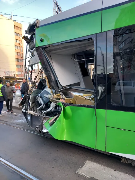 EXCLUSIV | Ce s-ar putea întâmpla cu tramvaiul Astra Imperio avariat în accidentul de duminică. STB: „Are cabina distrusă. Sunt probleme și la stâlpi”