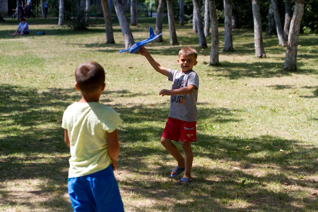 EXCLUSIV. Cei patru frați care au rămas fără casă, după ce acoperișul locuinței a luat foc, și-au împlinit micul vis: au mers în parc pentru prima dată și au mâncat pizza. Foto: ALEXANDRA PANDREA/GÂNDUL