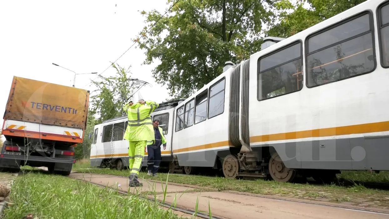 EXCLUSIV | Un tramvai a deraiat de pe șine, în Pipera, din cauza stării proaste a acestora – VIDEO