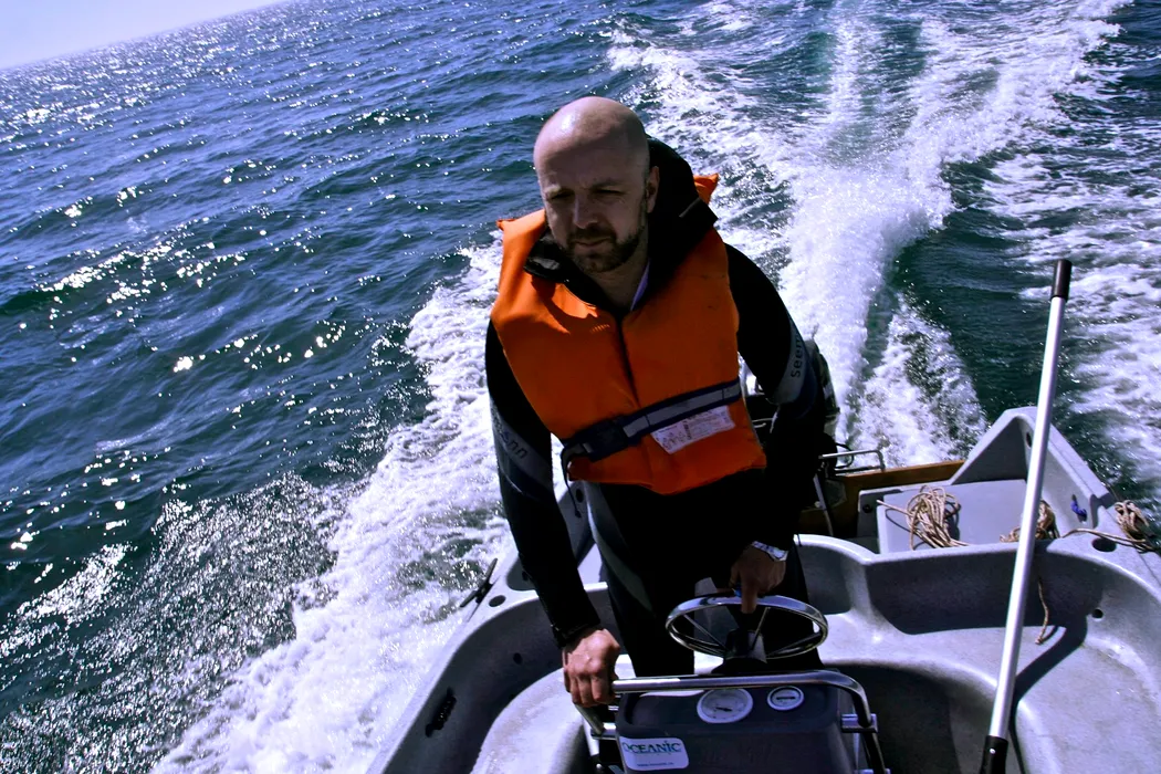 2012 - Biologul marin Răzvan Popescu-Mirceni, la comanda șalupei rapide Delphis-a-Oceanic Club - Cercetări Submarine