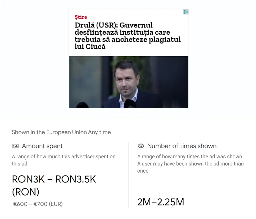 GALERIE FOTO: EXCLUSIV | Gândul a aflat sumele uriașe pe care le cheltuiește USR pentru a ataca în online celelalte partide. Aproape 750.000 de lei dați în ultimele trei luni pentru a promova paginile Uniunea Salvați România și Fără Penali în Funcții Publice