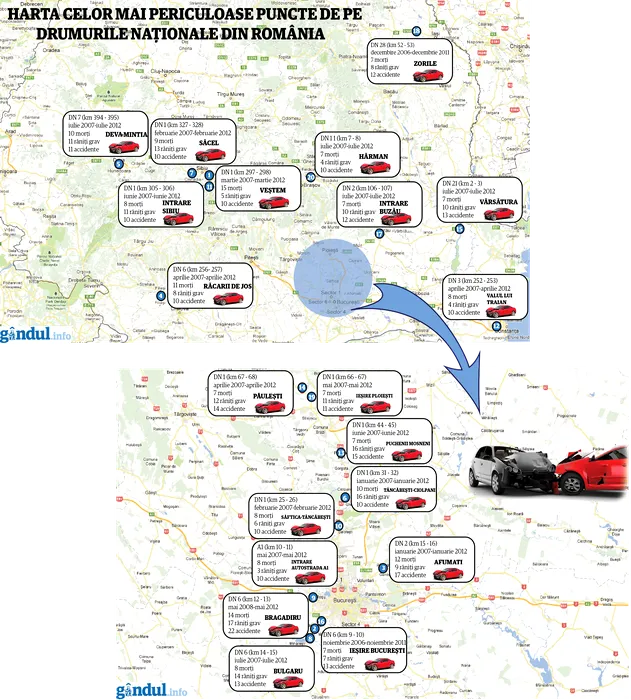 EXCLUSIV. Harta punctelor negre de pe șoselele României. Care sunt cele mai periculoase 20 de zone