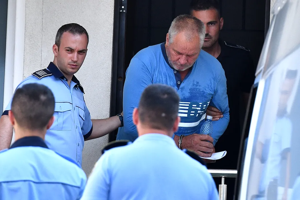 Gheorghe Dinca, principalul suspect in ancheta privind cele doua tinere rapite si ucise, paraseste insotit de politisti, sediul Curtii de Apel Craiova, marti 30 iulie 2019. REMUS BADEA / MEDIAFAX FOTO